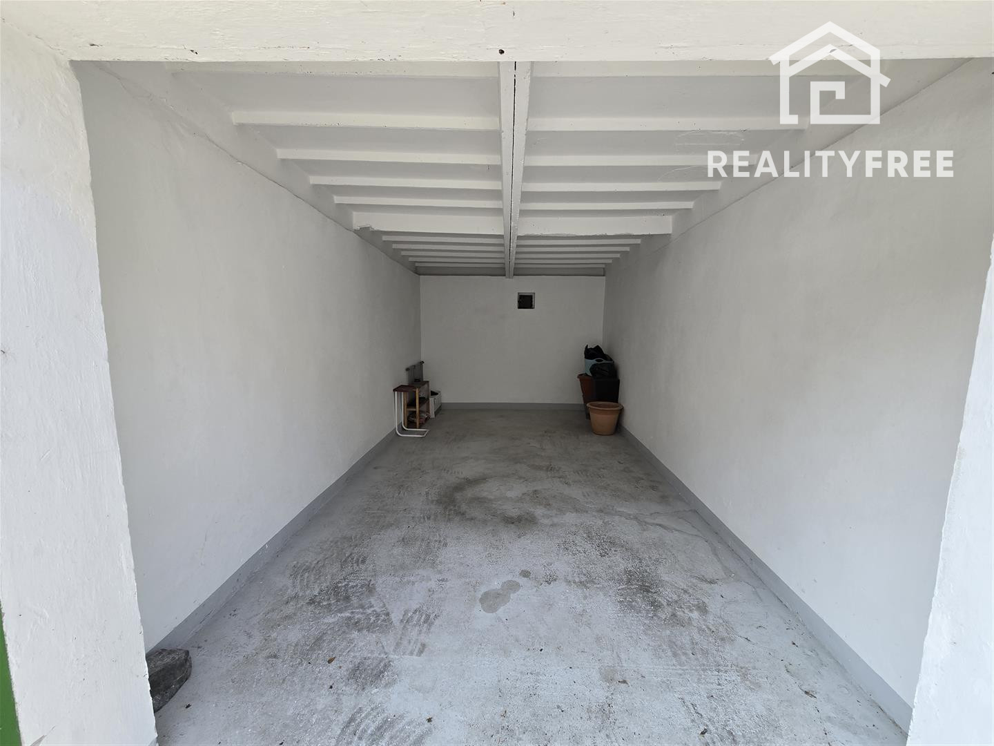 Garáž je suchá, betónová. Výmera je 20 m². Šírka vchodu je 2,16 m a výška vchodu je 1,95 m.