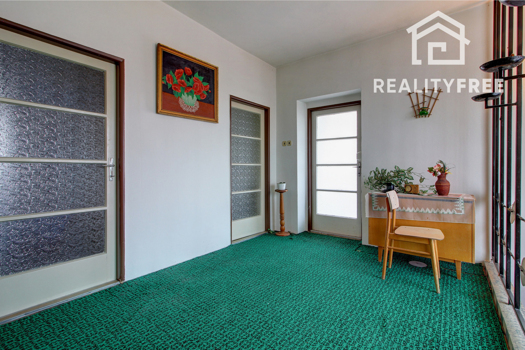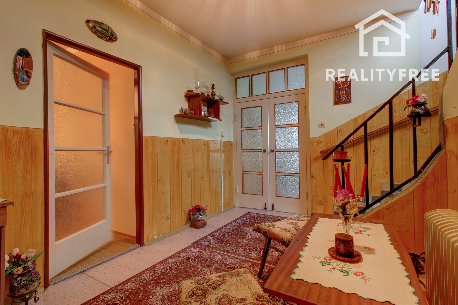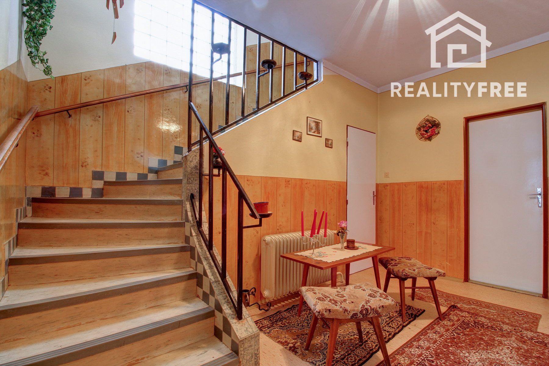 Prízemie: vstup - predsieň, samostatné WC, kuchyňa, chodba, obývačka, kúpeľňa, špajza, zadný vchod