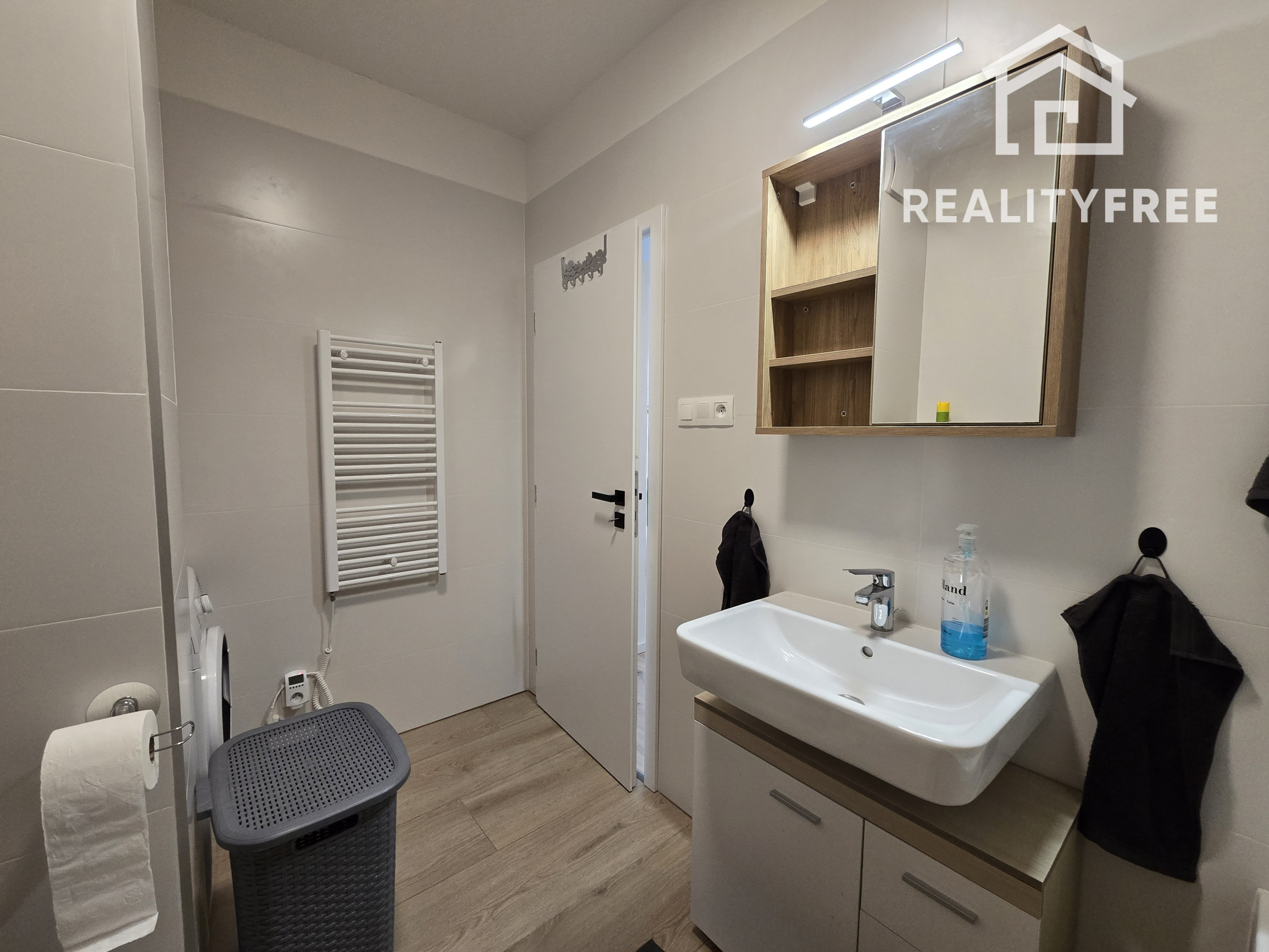 Vybavenie bytu: tak ako je na fotografiách - predsieň - vstavaná skriňa, kúpeľňa – kúpeľňový set, práčka, kuchyňa s obývačkou - chladnička, mraznička, elektrická varná doska, mikrovlnná rúra, umývačka riadu, gauč a TV set, jedálenský stôl, 4x stoličky, spálňa – vstavaná skriňa, manželská posteľ, nočné stolíky s lampami )