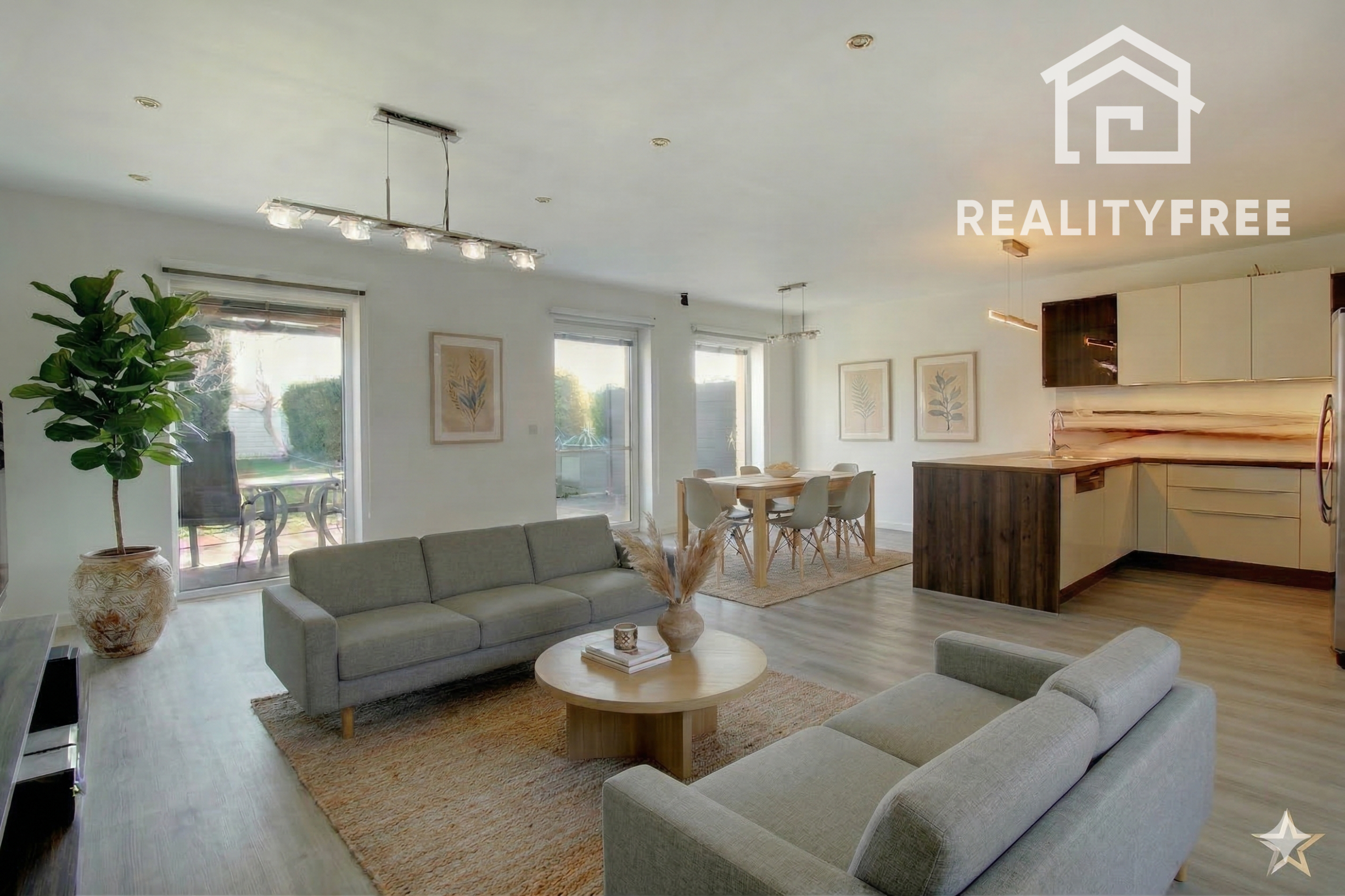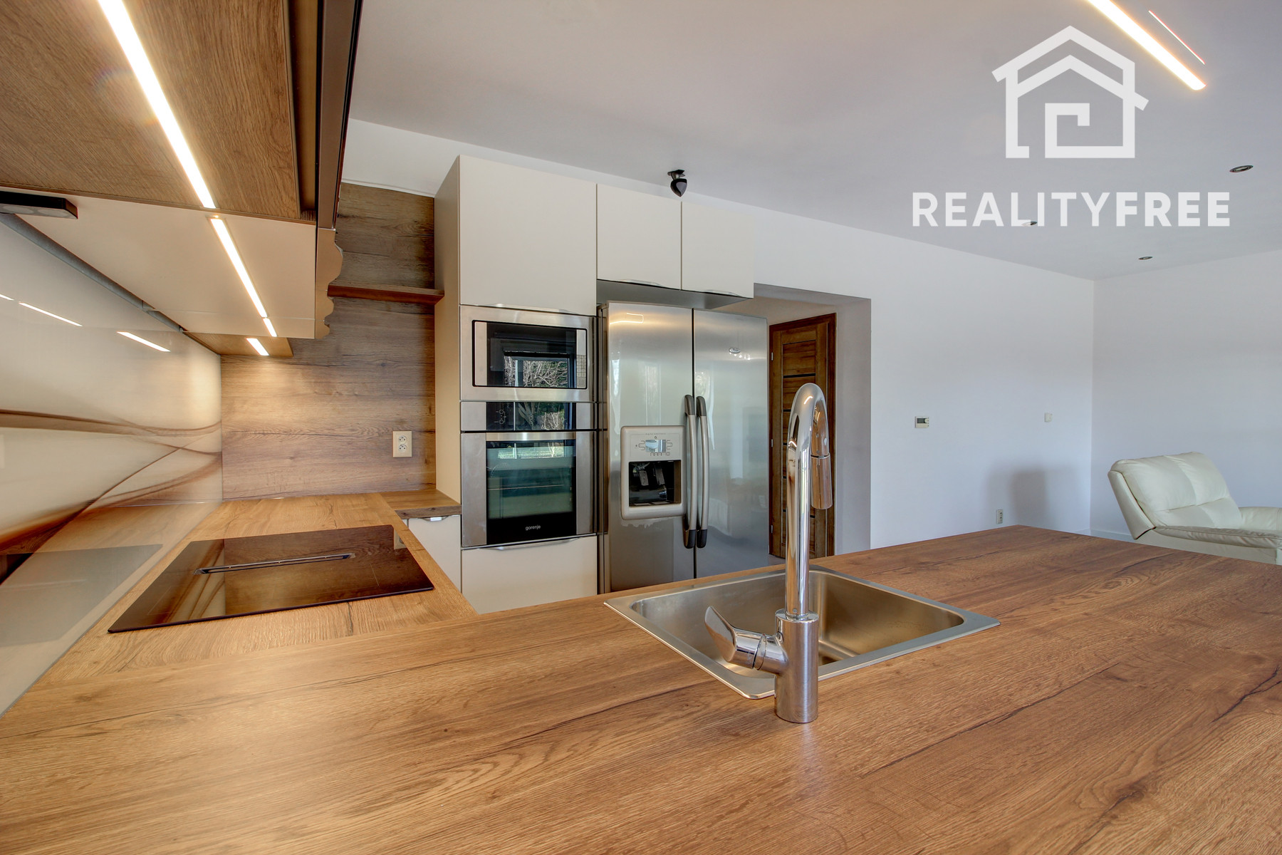 - priestranná denná časť – obývačka prepojená s jedálňou a kuchyňou s výstupom na terasu a do záhrady
