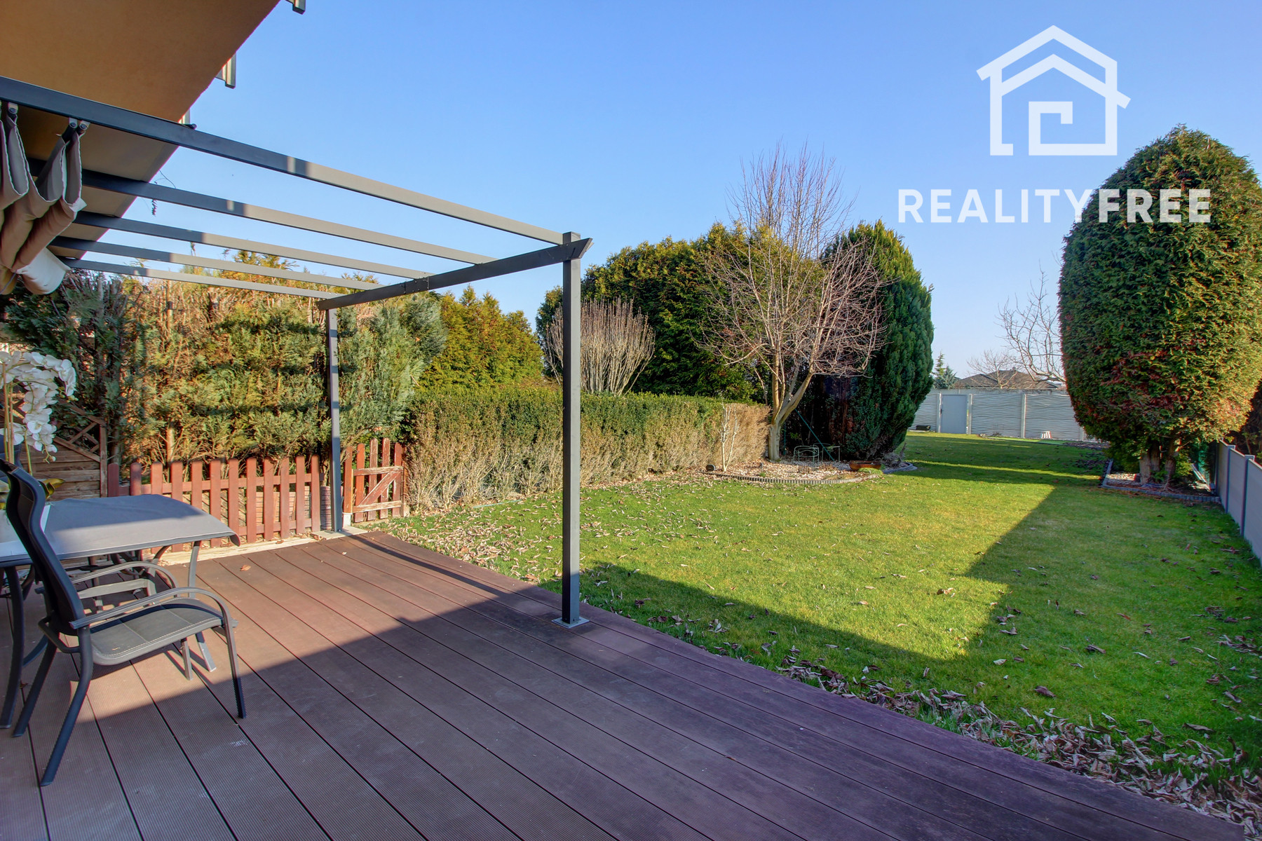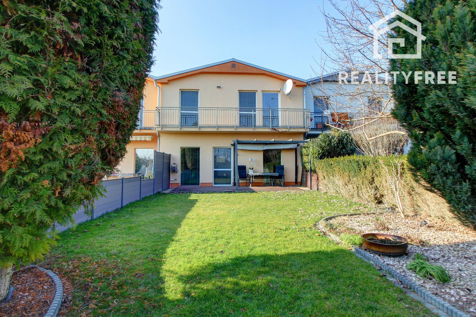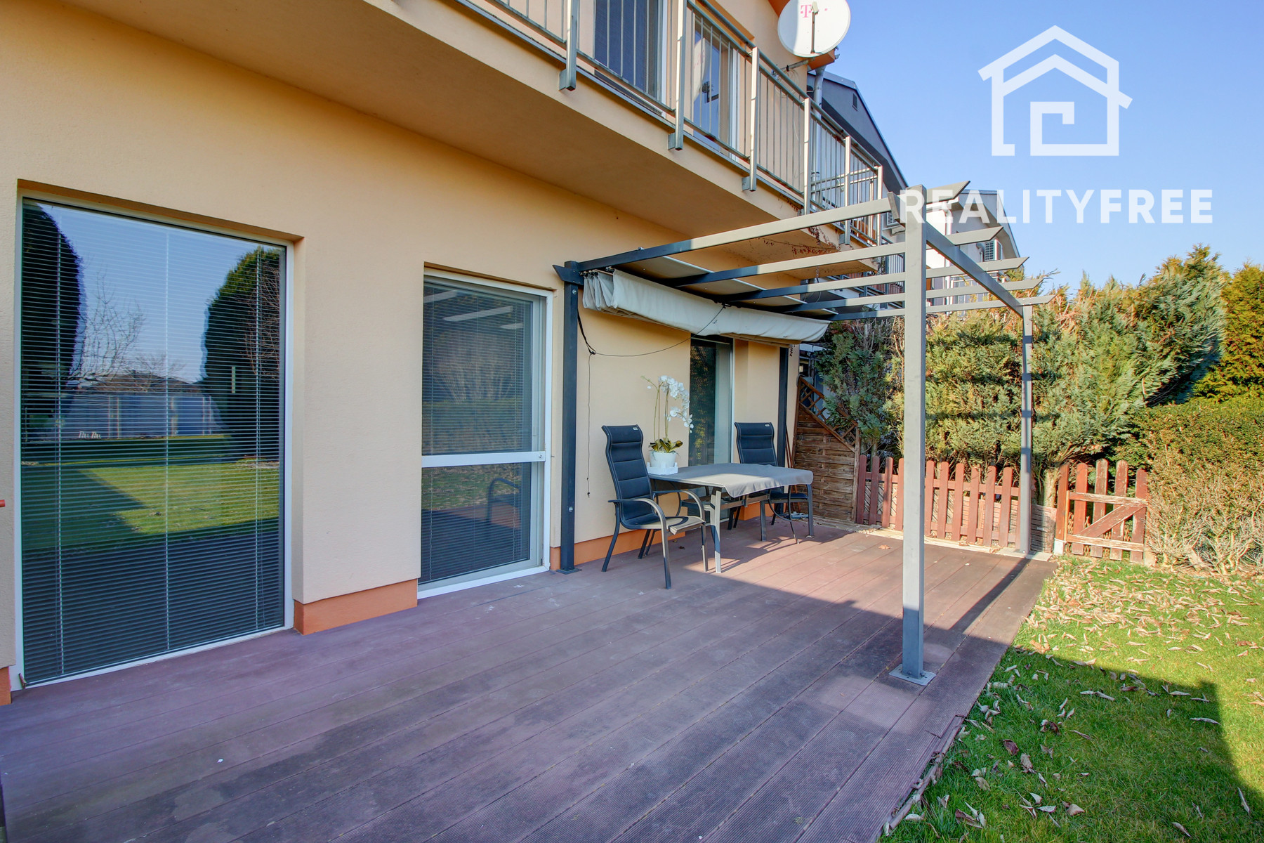 Veľkým benefitom je rozľahlá terasa a priestranná záhrada 346 m², ktoré ponúkajú ideálne miesto na oddych, rodinné stretnutia či detské aktivity. Záhrada poskytuje dostatok priestoru napríklad aj na umiestnenie bazéna. Disponuje studňou a závlahou. Po dokončení zadnej ulice bude možné zabezpečiť aj ďalší prístup na pozemok zo zadnej časti. Celková výmera pozemku je 503 m². Zastavaná plocha dome je 102 m².