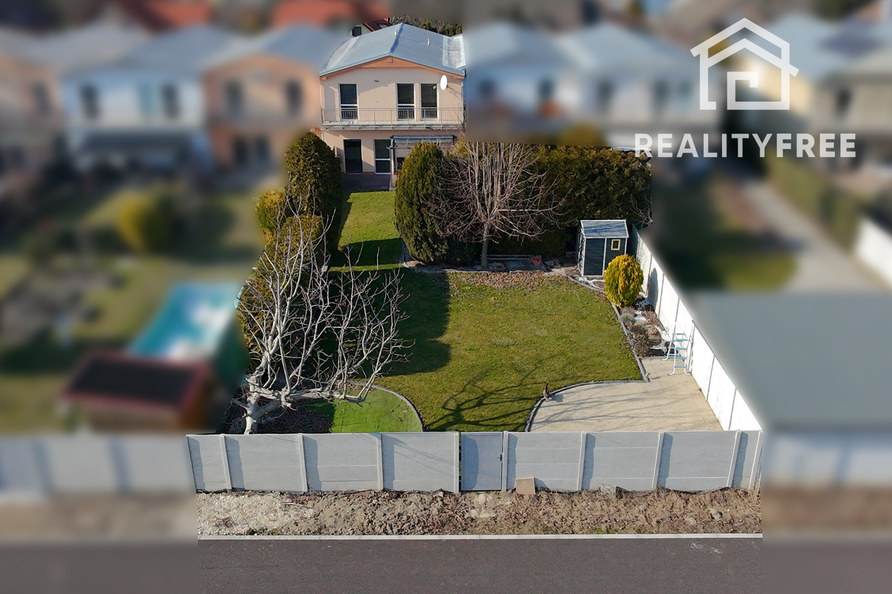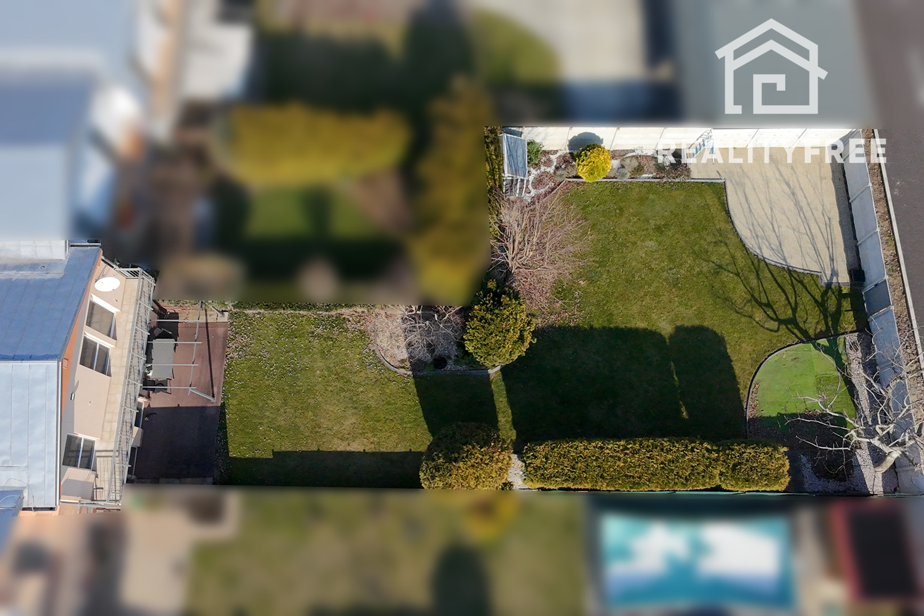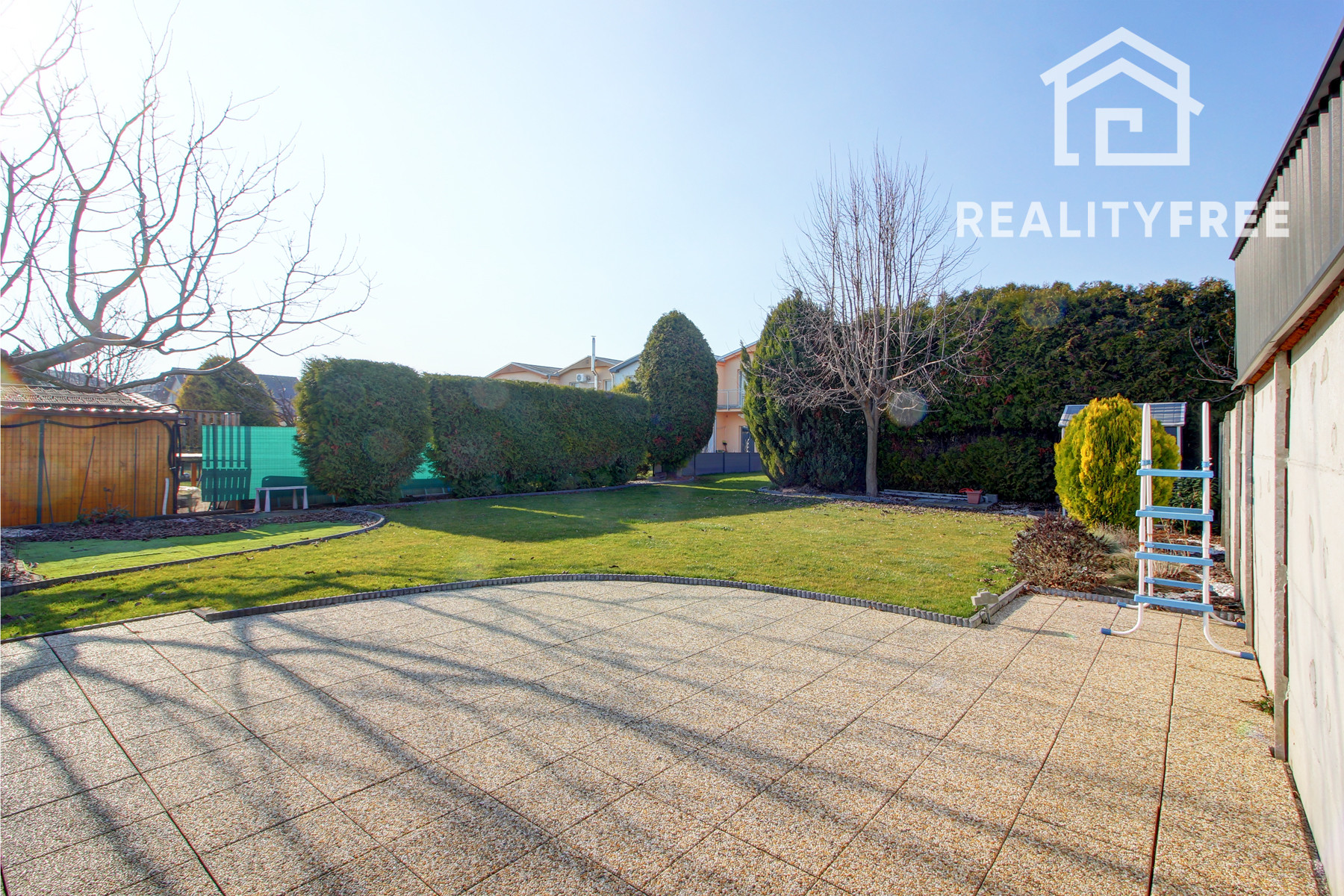 Veľkým benefitom je rozľahlá terasa a priestranná záhrada 346 m², ktoré ponúkajú ideálne miesto na oddych, rodinné stretnutia či detské aktivity. Záhrada poskytuje dostatok priestoru napríklad aj na umiestnenie bazéna. Disponuje studňou a závlahou. Po dokončení zadnej ulice bude možné zabezpečiť aj ďalší prístup na pozemok zo zadnej časti. Celková výmera pozemku je 503 m². Zastavaná plocha dome je 102 m².